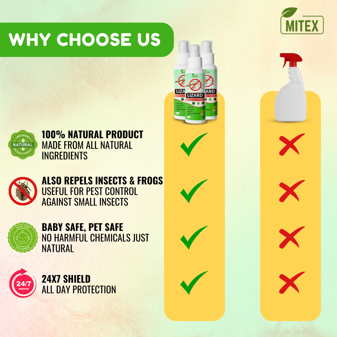 Experience the natural power of our Lizard Repellent Spray. Safe, effective, and long-lasting—order now and enjoy a lizard-free environment.